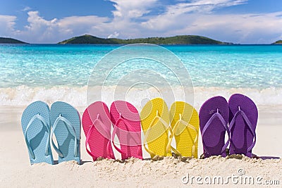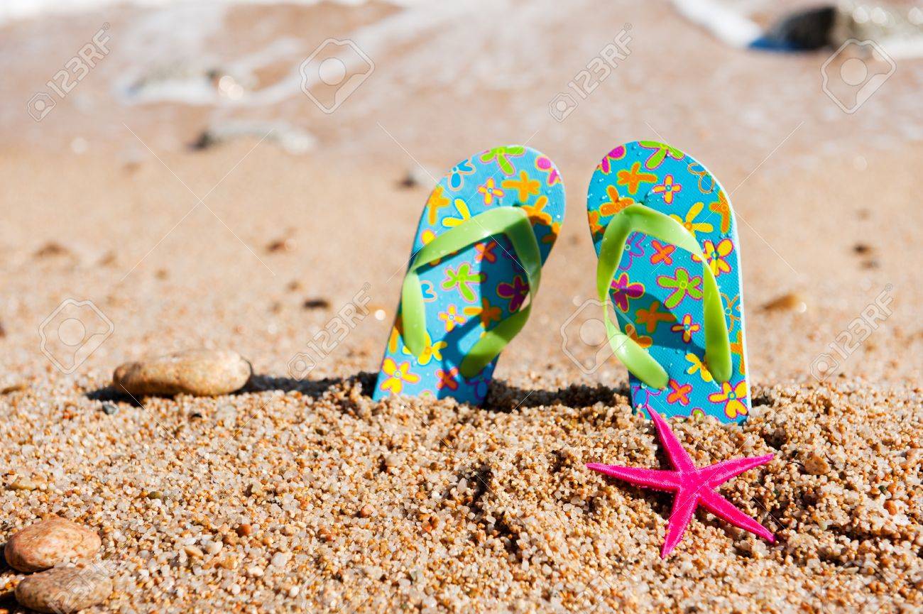 Colorful Flip-flop Sandals On Sea Beach Stock Photo - Image: 25715570